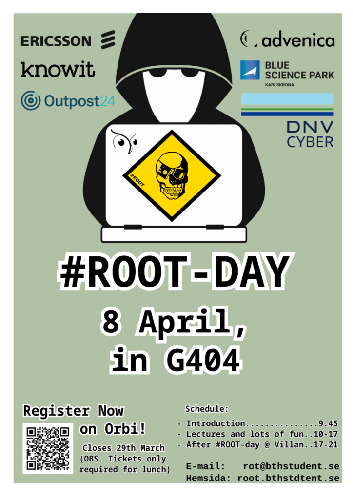 Det är dags för #ROOT-day! Den 10 december kommer vi att livesända två till tre stycken föreläsningar från klockan 13 inom IT och säkerhet! Missa inte detta, mer info samt länk kommer publiceras på denna hemsida några dagar innan eventet!
